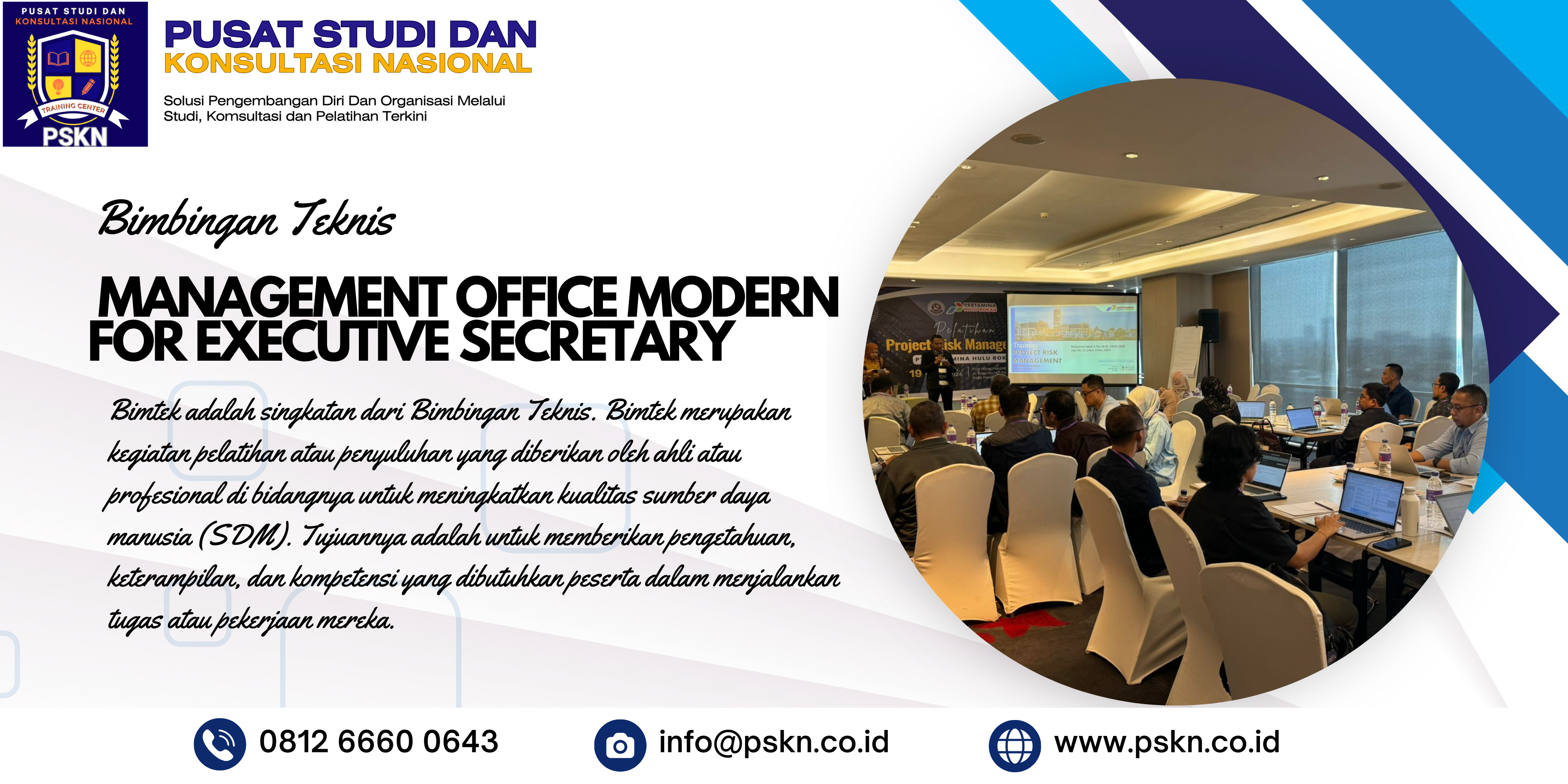 Dengan Ini Kami Pusat Studi Konsultasi Nasional Mengundangan Bapak/Ibu Untuk Hadir dalam Bimbingan Teknis Dengan Tema ”BIMTEK MANAGEMENT OFFICE MODERN FOR EXECUTIVE SECRETARY”