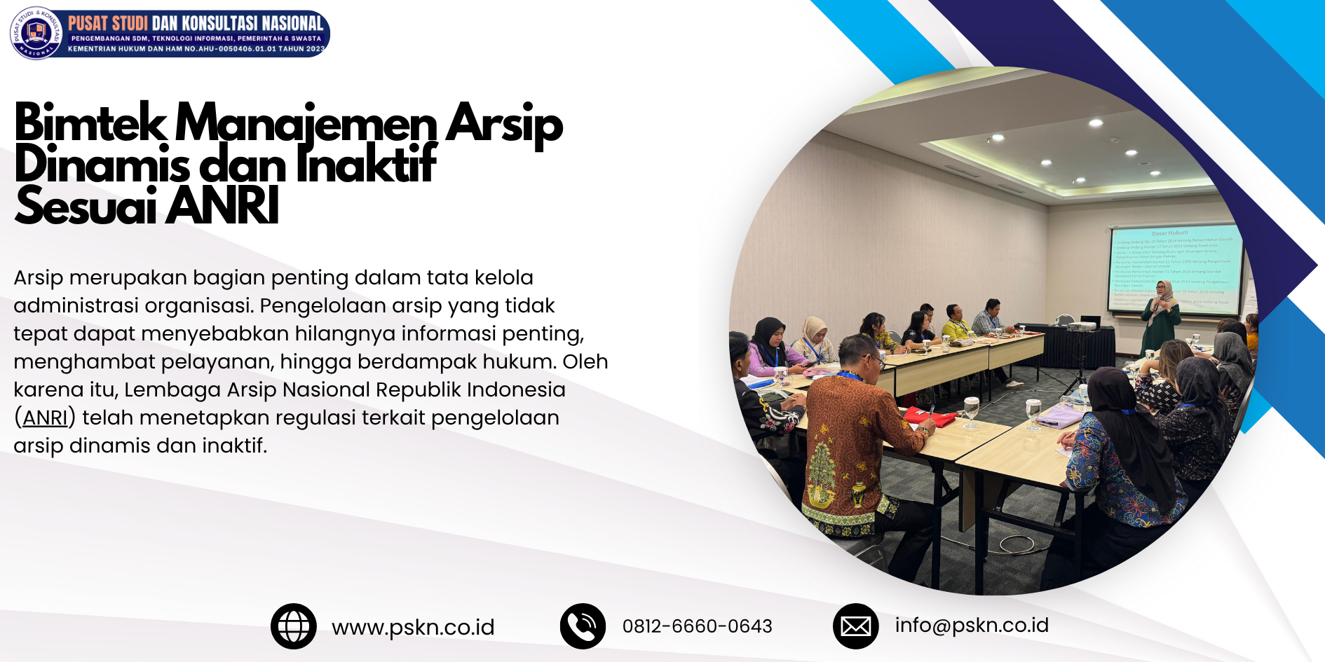 Dengan Ini Kami Pusat Studi Konsultasi Nasional Mengundangan Bapak/Ibu Untuk Hadir dalam Bimbingan Teknis Dengan Tema ”Bimtek Manajemen Arsip Dinamis dan Inaktif Sesuai ANRI”