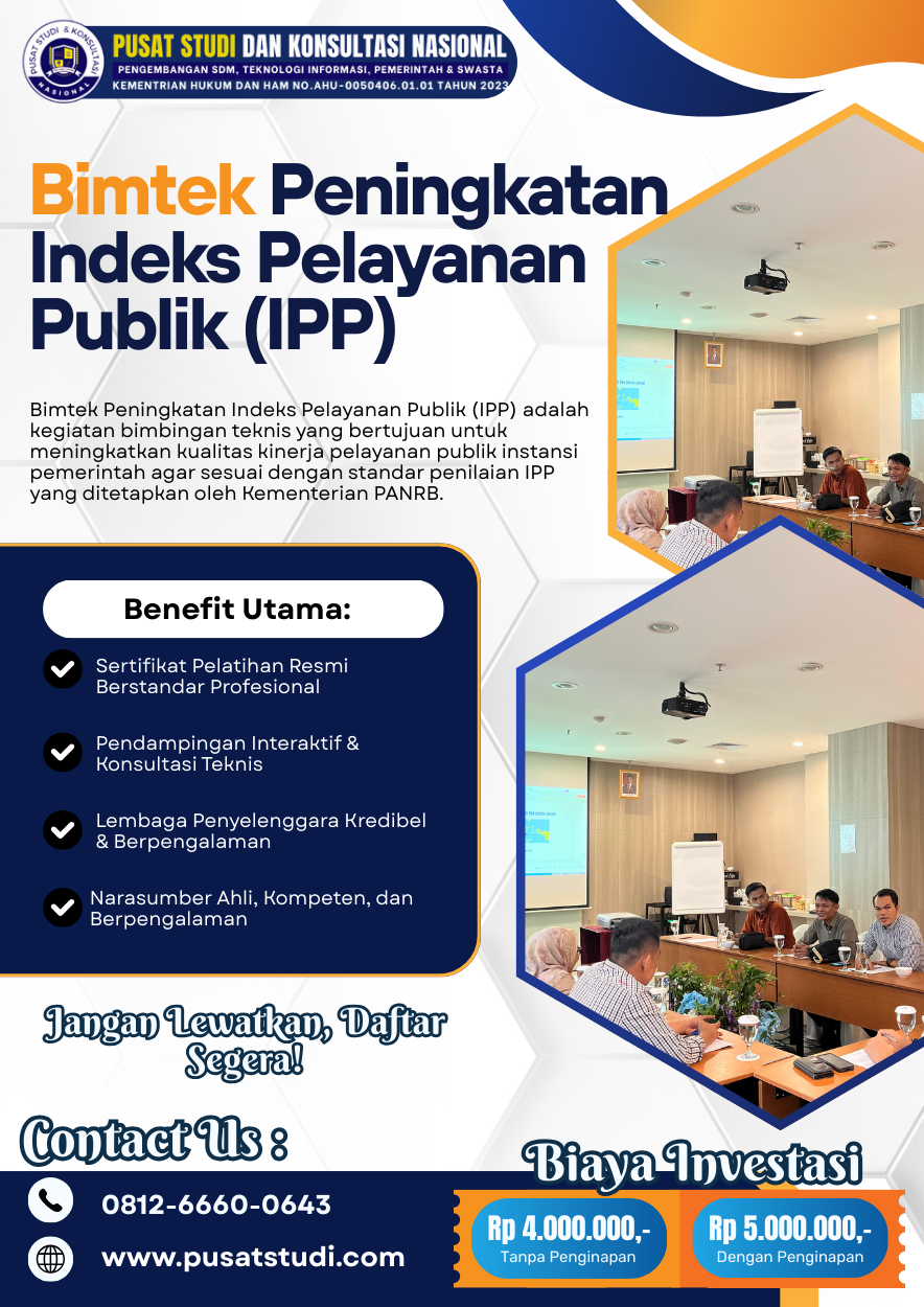 Bimtek Peningkatan Indeks Pelayanan Publik (IPP) membantu instansi pemerintah meningkatkan kualitas layanan, kepuasan masyarakat, dan nilai IPP secara berkelanjutan.