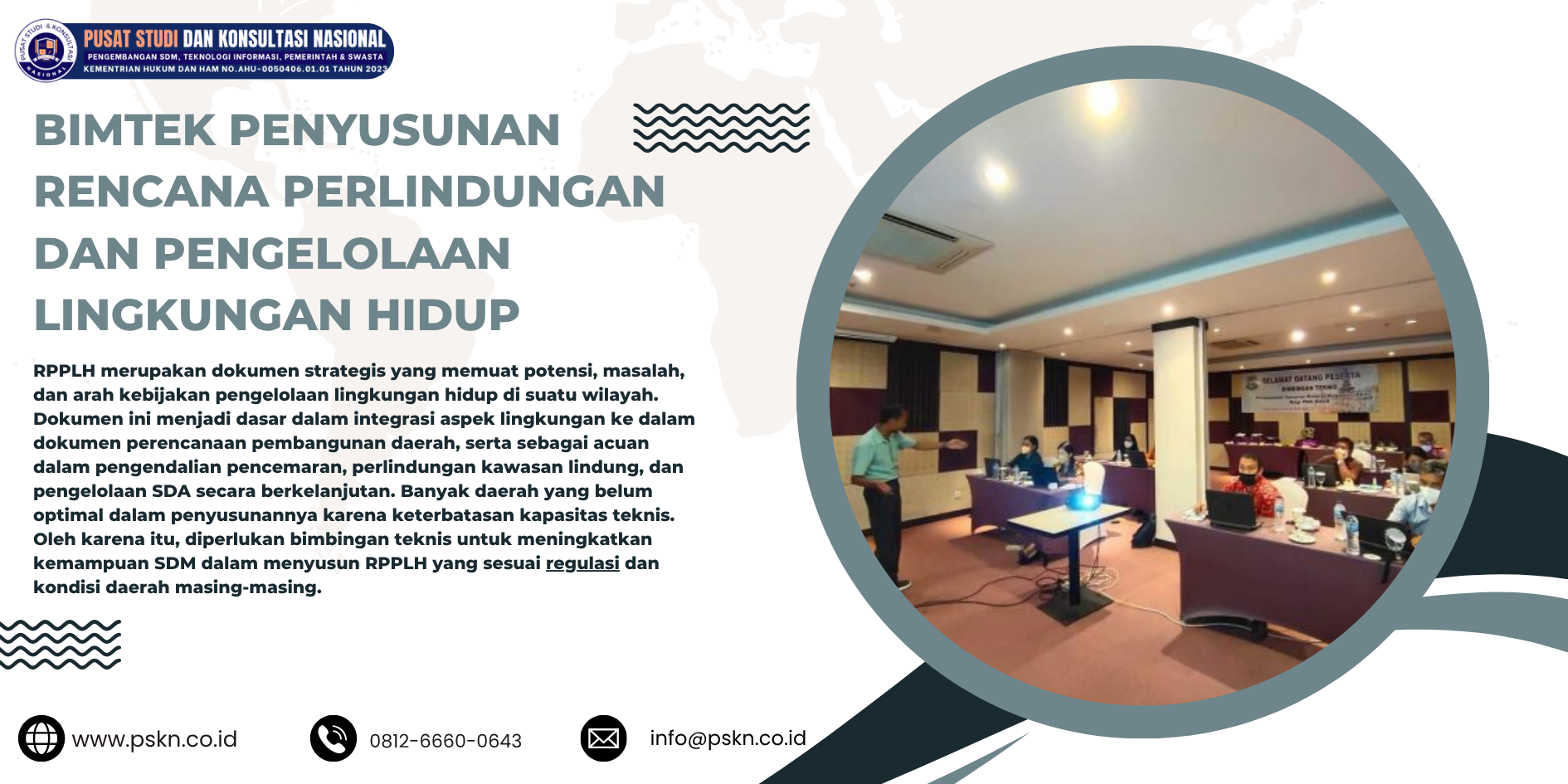 Dengan Ini Kami Pusat Studi Konsultasi Nasional Mengundangan Bapak/Ibu Untuk Hadir dalam Bimbingan Teknis Dengan Tema Bimtek Penyusunan Rencana Perlindungan dan Pengelolaan Lingkungan Hidup ”