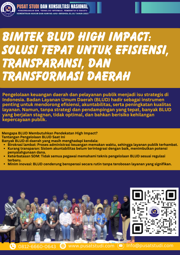 Pengelolaan keuangan daerah dan pelayanan publik menjadi isu strategis di Indonesia. Badan Layanan Umum Daerah (BLUD) hadir sebagai instrumen penting ...