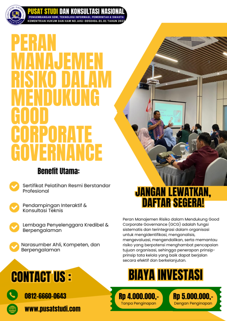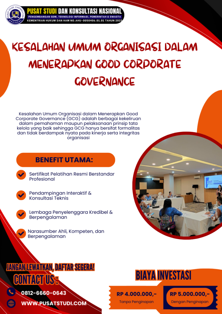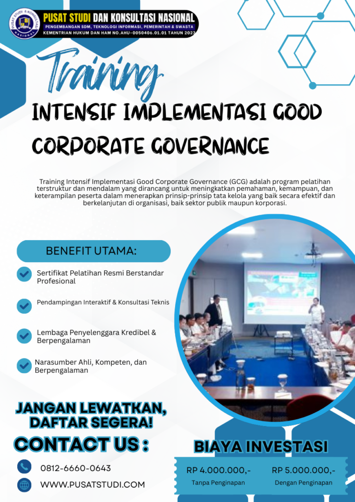Penerapan Good Corporate Governance (GCG) telah menjadi kebutuhan mendasar bagi organisasi modern, baik di sektor pemerintahan, BUMN, BUMD, maupun swa...