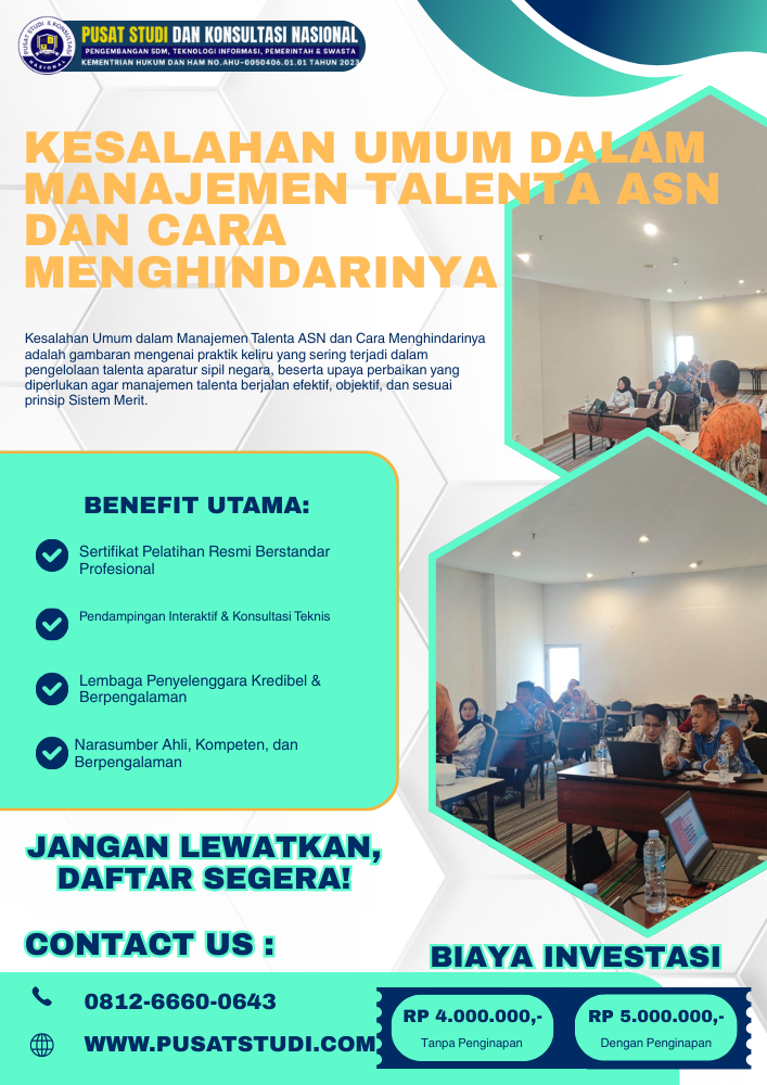 Manajemen talenta Aparatur Sipil Negara (ASN) merupakan salah satu pilar utama dalam penerapan sistem merit dan reformasi birokrasi di Indonesia. Mela...