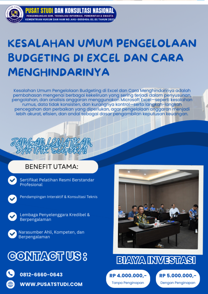 Microsoft Excel telah lama menjadi alat utama dalam penyusunan dan pengelolaan anggaran, baik di sektor pemerintahan, BUMN, BUMD, maupun organisasi sw...