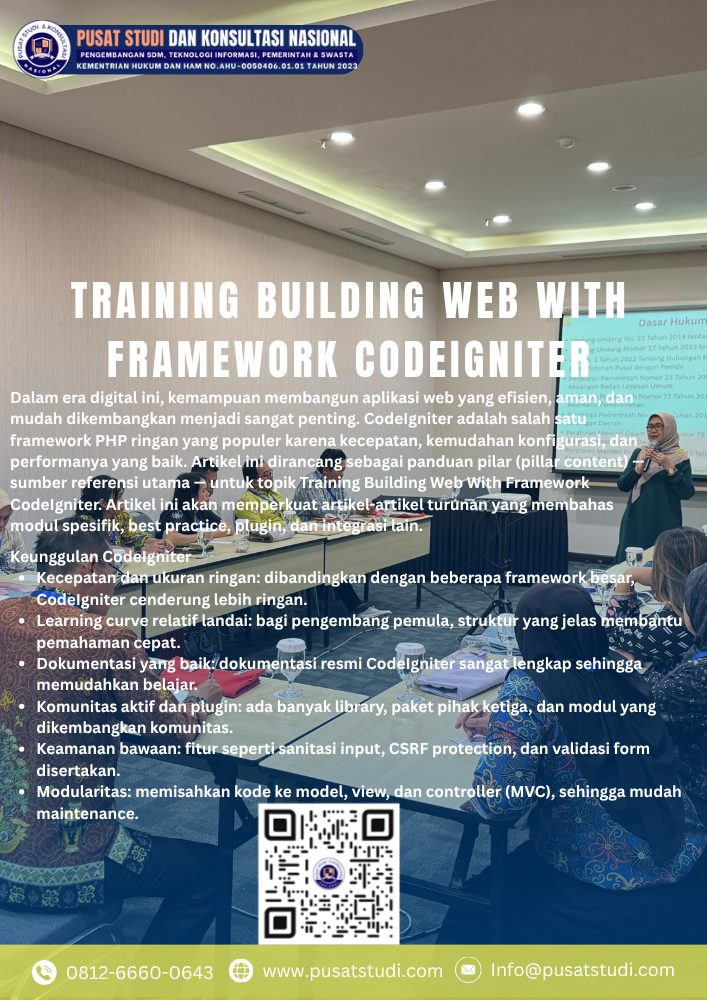 Dalam era digital ini, kemampuan membangun aplikasi web yang efisien, aman, dan mudah dikembangkan menjadi sangat penting. CodeIgniter adalah salah sa...