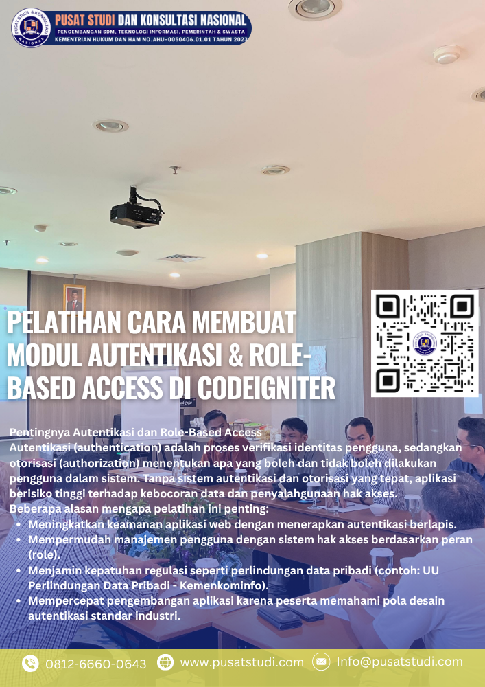 Dalam pengembangan aplikasi web modern, aspek keamanan dan manajemen akses pengguna menjadi elemen yang sangat penting. Framework seperti CodeIgniter ...