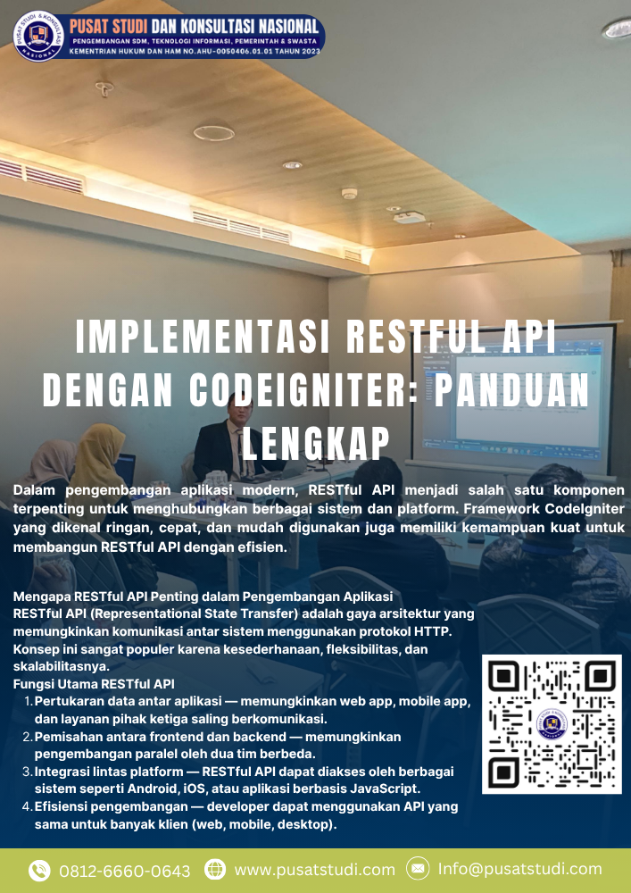 Dalam pengembangan aplikasi modern, RESTful API menjadi salah satu komponen terpenting untuk menghubungkan berbagai sistem dan platform. Framework Cod...