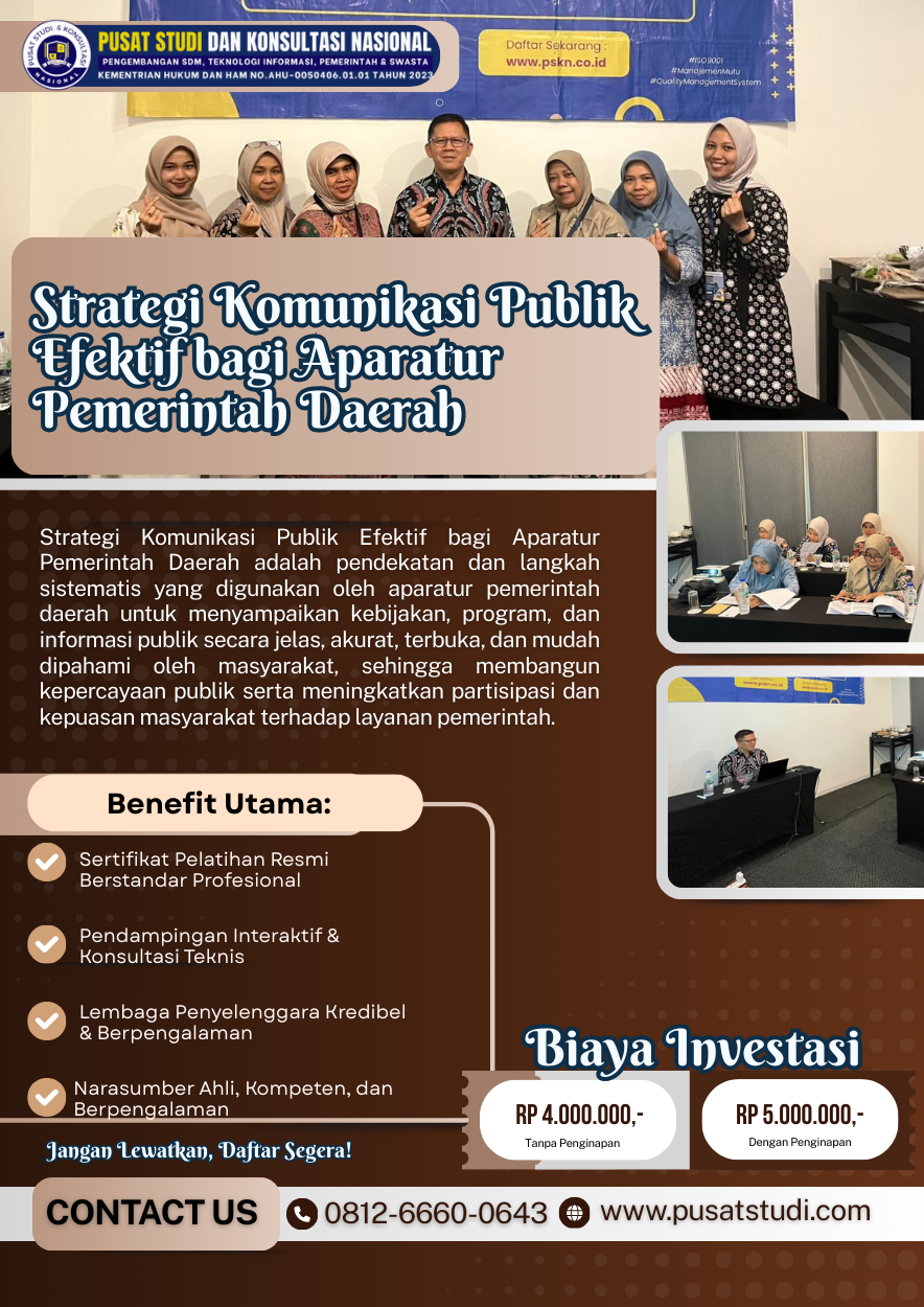 Tingkatkan kualitas komunikasi aparatur, perkuat etika pelayanan, dan bangun kepercayaan publik melalui pengembangan kompetensi yang terarah dan berkelanjutan.