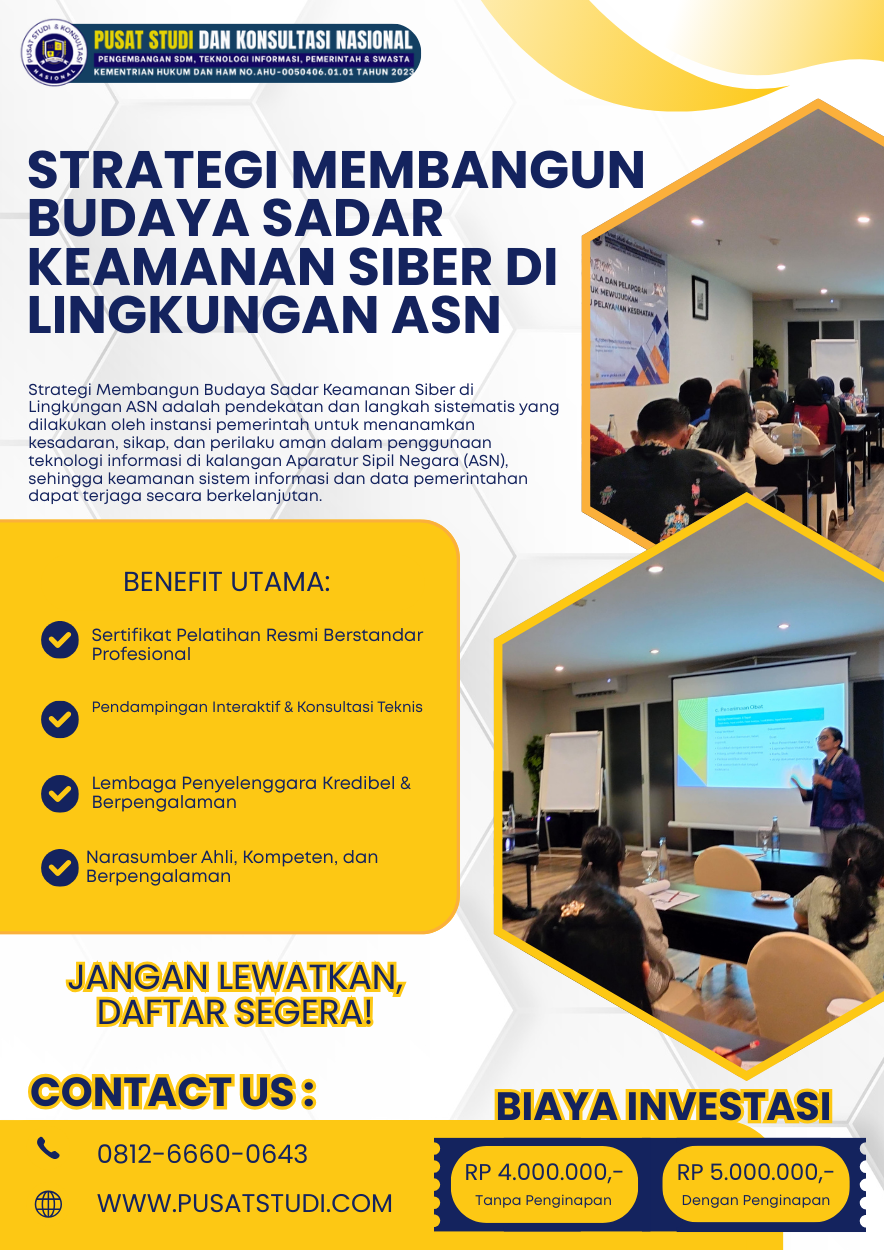 Perkembangan teknologi digital di sektor pemerintahan telah mengubah cara Aparatur Sipil Negara (ASN) bekerja dan melayani masyarakat. Pemanfaatan sistem elektronik, aplikasi layanan publik, serta integrasi data lintas instansi memberikan efisiensi dan transparansi yang signifikan. Namun, di sisi lain, transformasi digital juga meningkatkan risiko ancaman keamanan siber.