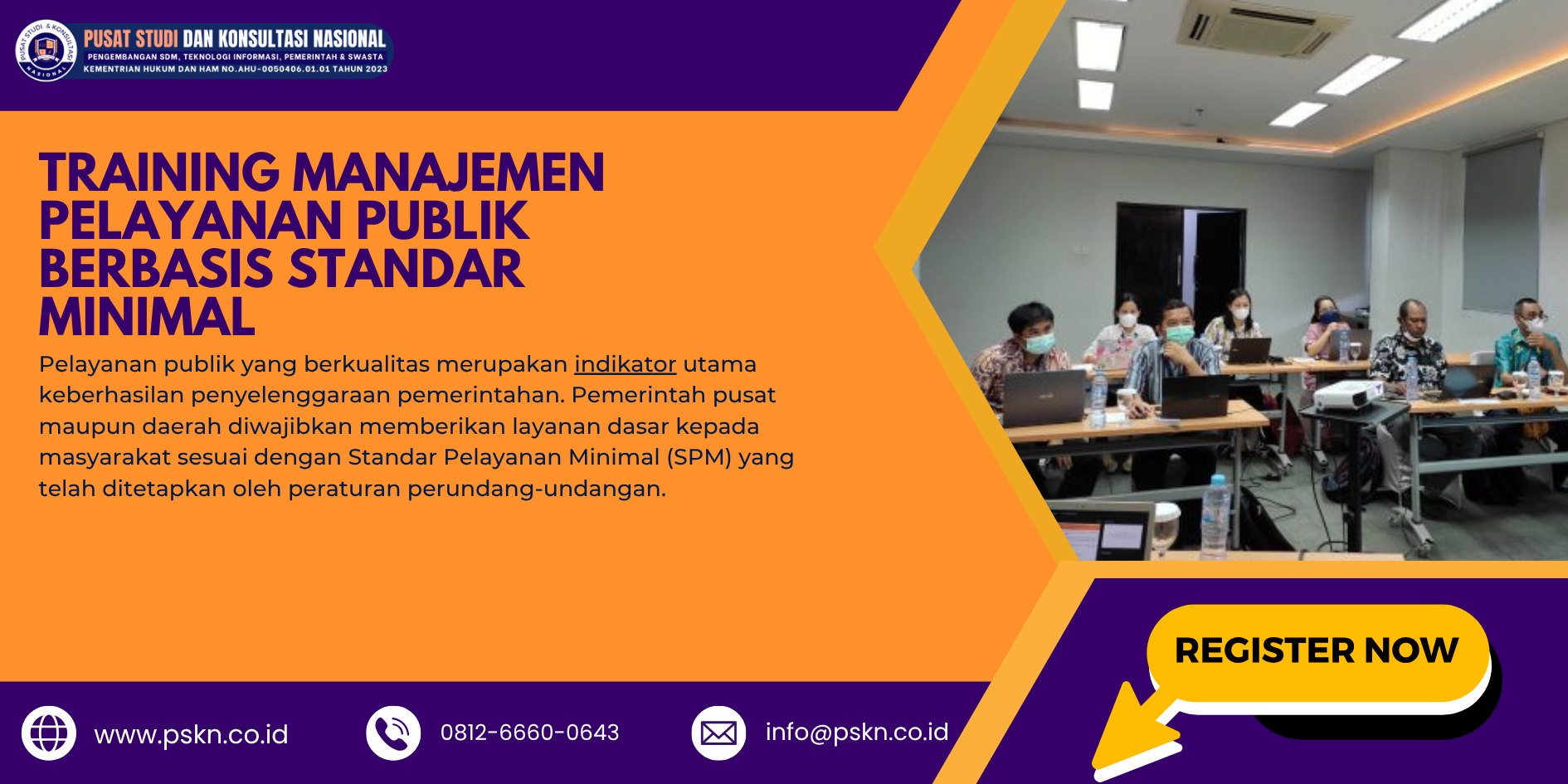 Dengan Ini Kami Pusat Studi Konsultasi Nasional Mengundangan Bapak/Ibu Untuk Hadir dalam Bimbingan Teknis Dengan Tema ”Training Manajemen Pelayanan Publik Berbasis Standar Minimal”
